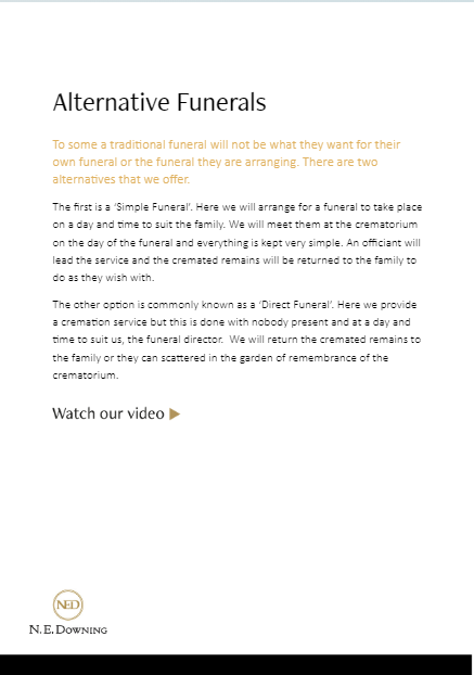 Funeral Plans are individually priced and a number of payment options are available. The payment can also be spread monthly over several years. Once the plan is fully paid the family or estate will not be charged a penny more for our funeral director services. There are some third party costs known as disbursements that are outside our control (such as crematorium charges, doctors’ fees or cemetery costs). Only if these costs increase faster than the growth in the value of the plan might there be a balance to pay.